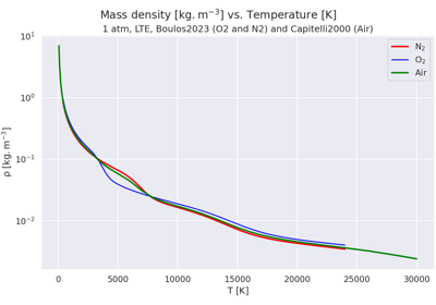 Plot thermodynamic and transport data vs. temperature for a plasma of Air, O2 or N2 in LTE.