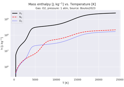 Plot thermo data vs. temperature for a plasma of H2, O2 or N2 in LTE.