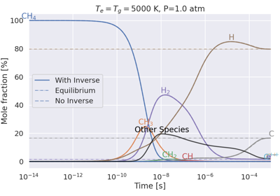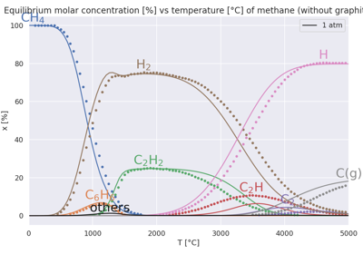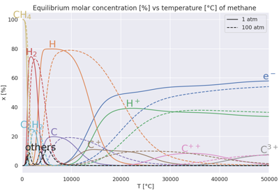 Methane and hydrogen thermodynamic properties in Local Thermal Equilibrium (LTE) for now, as well as composition at equilibrium for methane and hydrogen.