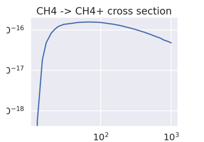 Cross sections and reaction rate constant for the ionisation of CH₄ by electrons.