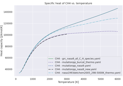 Plot thermodynamic properties of CH₄ vs. temperatures.